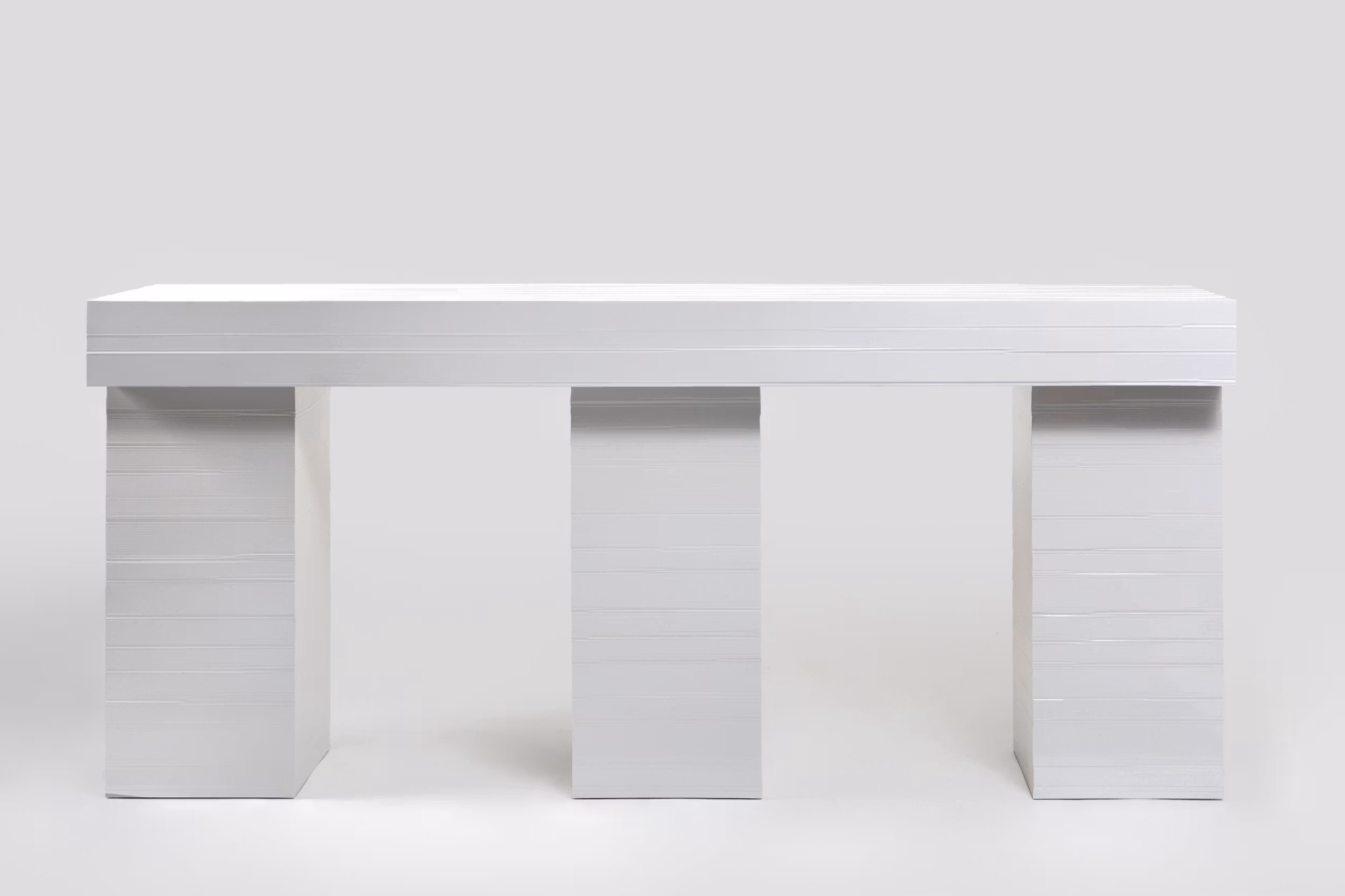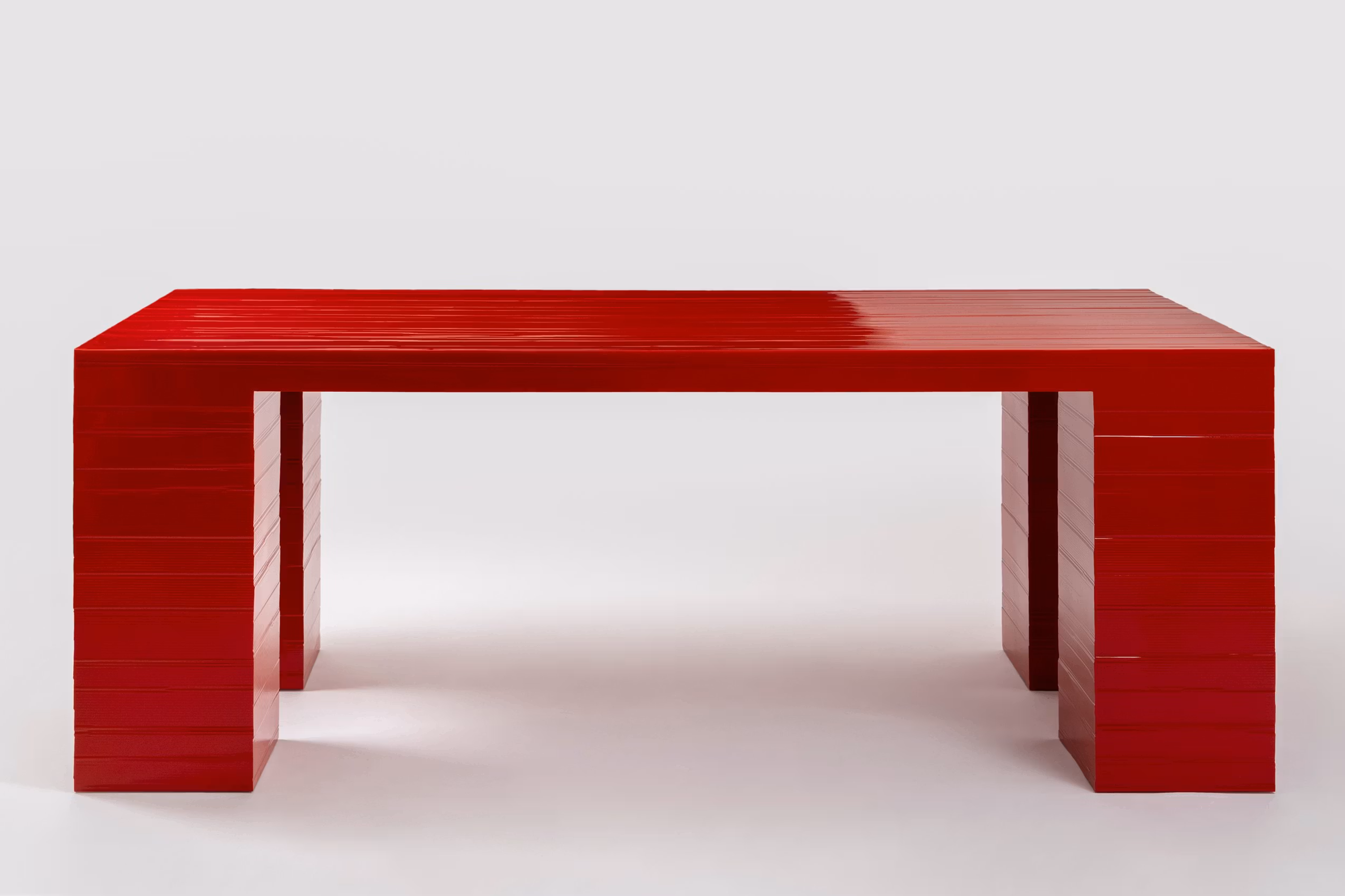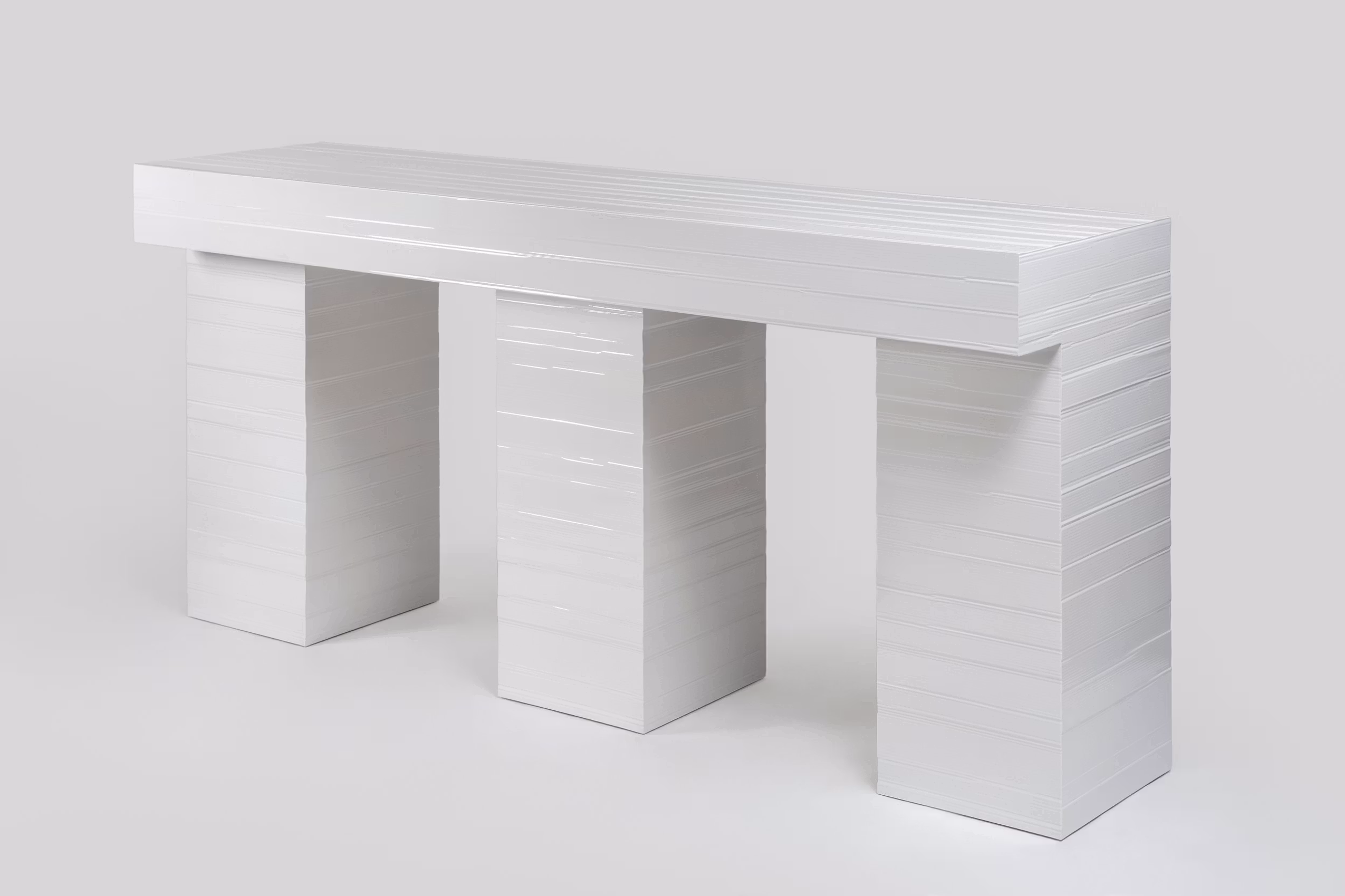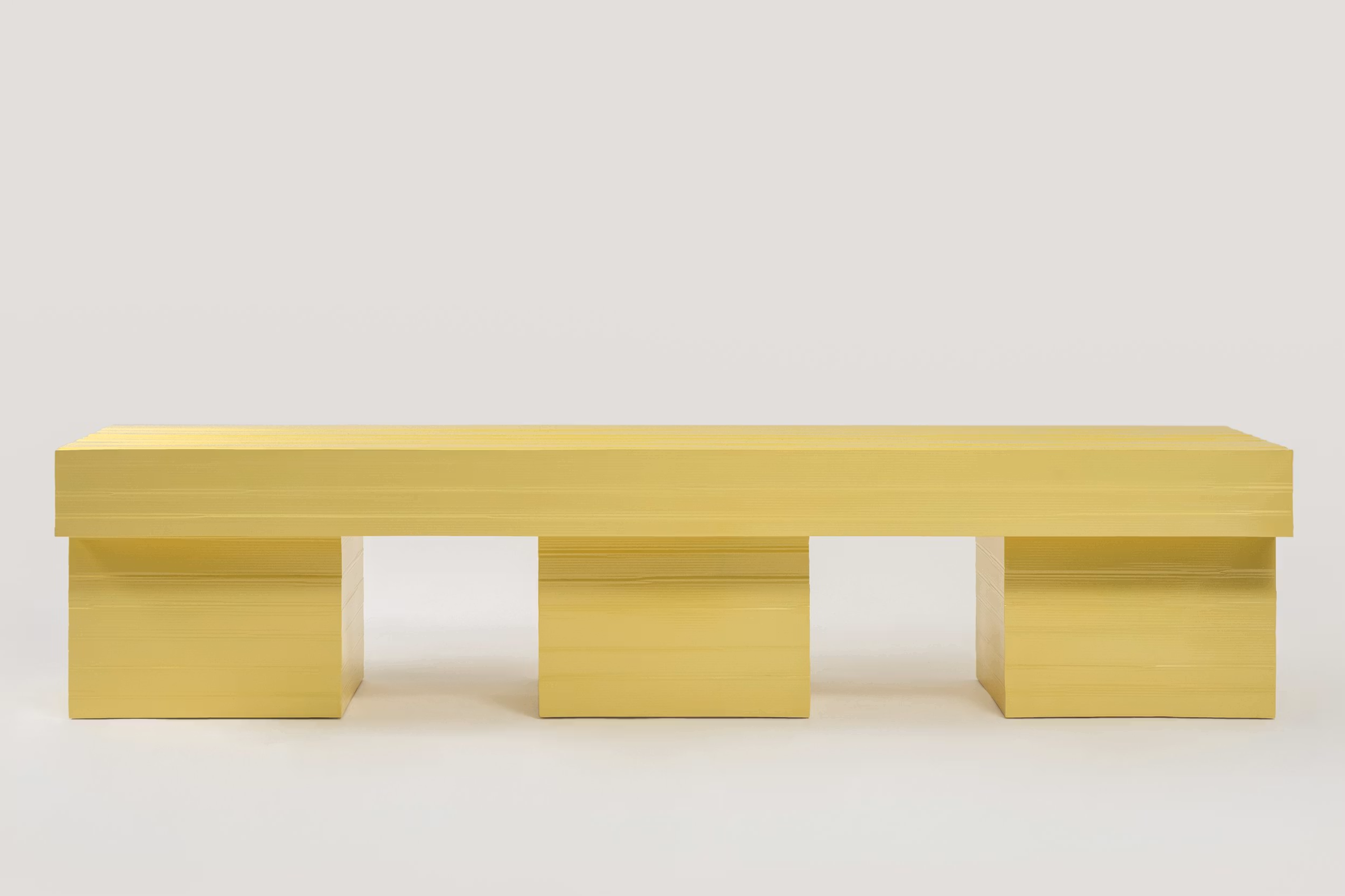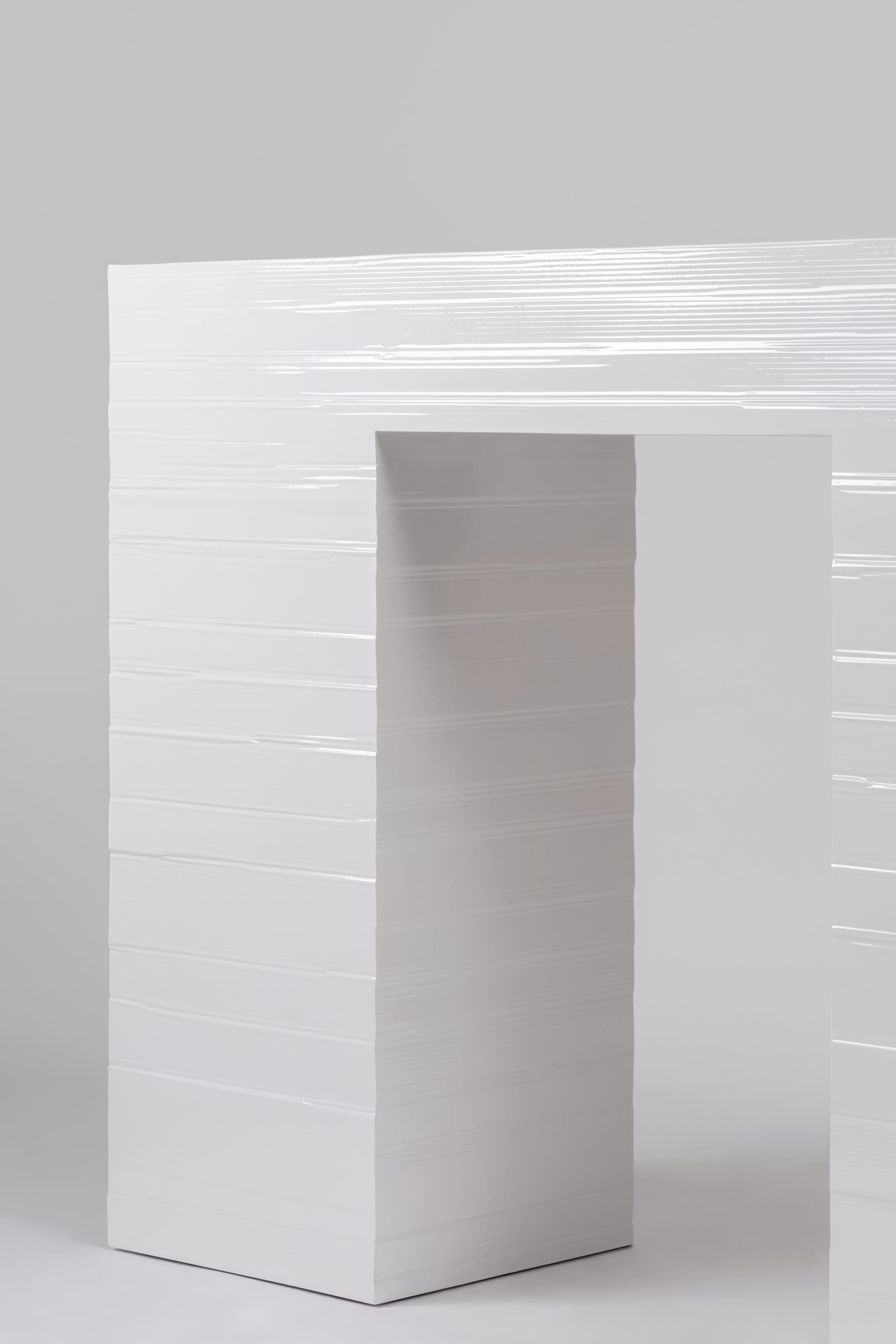 Jello is a furniture collection developed through an experimental, hands-on process that challenges conventional production methods. Each piece is shaped directly through the mould, with no post-processing, allowing the form to emerge from the material interaction itself. Originally conceived during a workshop at MACRO – Museum of Contemporary Art in Rome in 2020 – using cardboard moulds, the project has since evolved into a refined collection produced exclusively for Galerie kreo. It includes a dining table, coffee table, console, bench, mirror/chair, and a chair. The Jello Chair (2022) is part of the Design Museum, London permanent collection.
